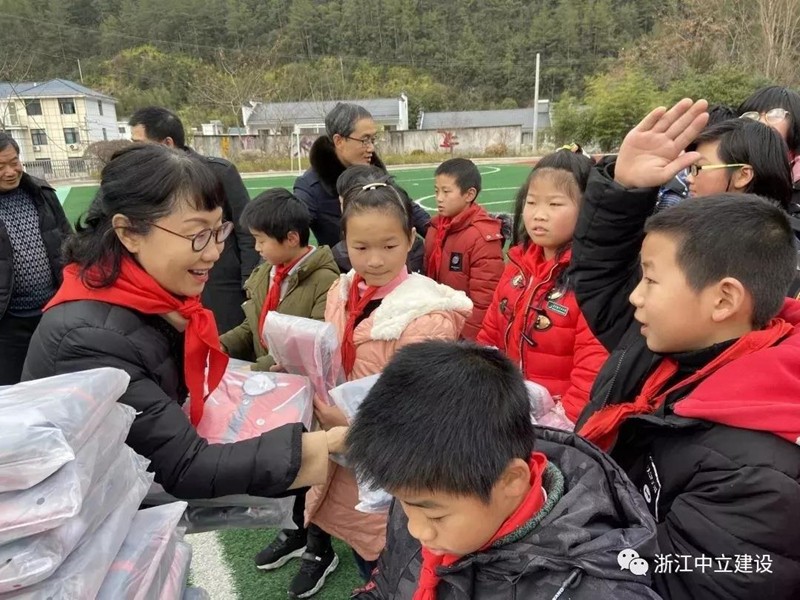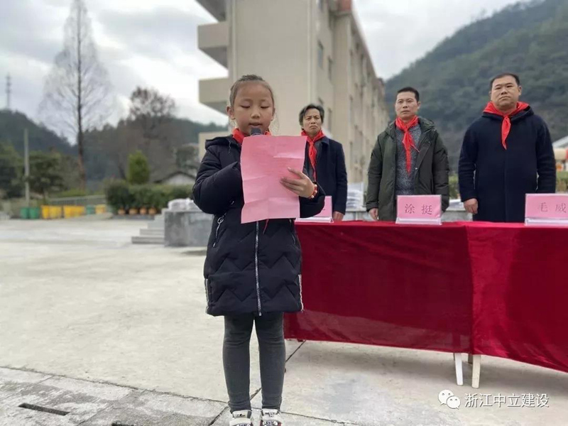 新年伊始,恰逢臘八,浙江中立建設(shè)有限公司帶著81套校服走進(jìn)遂昌大山深處的黃沙腰小學(xué),給大山里的孩子送去冬日里的溫暖。公司副總經(jīng)理葉麗紅、項(xiàng)目負(fù)責(zé)人曹亮、黃沙腰鎮(zhèn)鎮(zhèn)長(zhǎng)毛威、黃沙腰鎮(zhèn)人大主席涂挺、遂昌縣教育局黨組成員王其孔、黃沙腰小學(xué)校長(zhǎng)葉益明出席了捐贈(zèng)儀式。在捐贈(zèng)儀式上葉麗紅希望同學(xué)們刻苦學(xué)習(xí),立志成才,不負(fù)韶華,回報(bào)社會(huì),回報(bào)祖國(guó)。葉校長(zhǎng)致辭對(duì)捐贈(zèng)校服的善舉表述了衷心的感謝。校優(yōu)秀少先隊(duì)員王夢(mèng)媛致感謝詞:“叔叔阿姨們,請(qǐng)相信我們,我們會(huì)努力學(xué)習(xí),去創(chuàng)造一片屬于自己的絢麗天空;我們會(huì)努力學(xué)習(xí),早日成為國(guó)家的棟梁,為家鄉(xiāng)建設(shè)貢獻(xiàn)自己的力量。我們堅(jiān)信一定不會(huì)讓你們失望!”