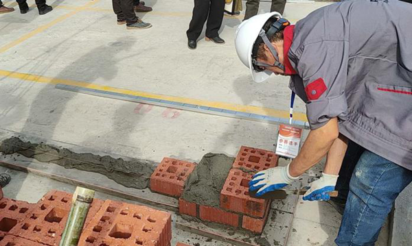 參賽代表需在1.5小時(shí)內(nèi)完成長1.5米、高1.2米的帶預(yù)留洞口和馬牙槎的砌體,通過緊張、激烈的競賽,最終裁判通過垂直度、灰縫寬度、平整度等現(xiàn)場實(shí)測實(shí)量和砌體構(gòu)造及觀感質(zhì)量等綜合評分,我公司代表隊(duì)獲得了第二名的好成績。
